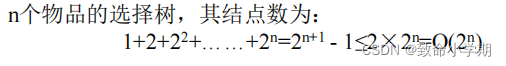 }void search (int i){ /*递归法*/if(i>n-1){//搜索完 递归出口 if(nowc>maxc){//现在重量值>当前最优 //更新最优解 maxc=nowc;//记录最优解的路径 for(int j=1;j<=n;j++)maxx[j]=x[j];}return;//结束最后一层的函数,回溯到上一层进行递归调用 }r=r-w[i]; //此时 陆地上集装箱的剩余重量 //若不装,则岸上重量减去if(nowc+w[i]<=c){ //满足约束(小于轮船载重量),左子树x[i]=1;nowc=nowc+w[i];search(i+1);//递归搜索i+1层nowc=nowc-w[i];//回溯后恢复nowc//回到上一层 }/*下面开始搜索右子树 *///右子树是否需要递归if(nowc+r>maxc){ /*上界函数 此时当前轮船已载重量+剩余集装箱重量 > 当前最优*/x[i]=0;search(i+1); //递归搜索i+1层}//否则不进行递归,也就是可以确认为死结点 r=r+w[i];//对第i层搜索完毕,恢复r//陆地上增加