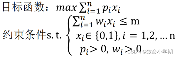 pi第i个物品价值>0,xi第i个物品是否被选择[0,1]
