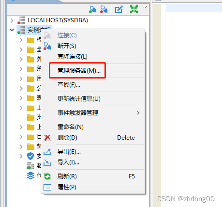 右键点击实例连接,点击管理服务器