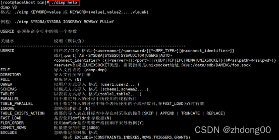 DIRECTORY=/dm/dmexp:导出目录为/dm/dmexp