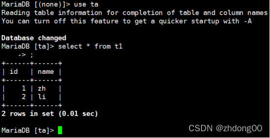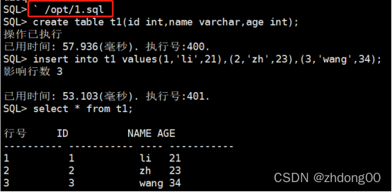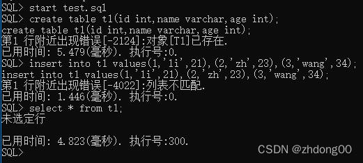 输入命令start指定sql脚本,进行执行脚本中的语句