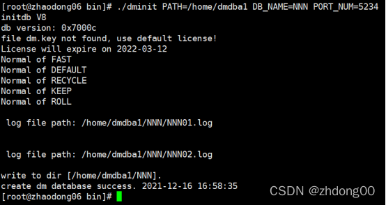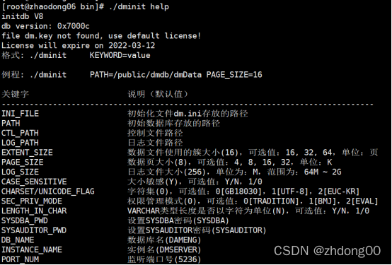 1.2.2Linux命令行中dminit创建数据库