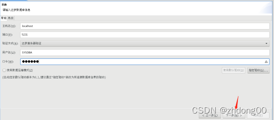 输入要连接数据库的端口号,连接用户以及用户的口令