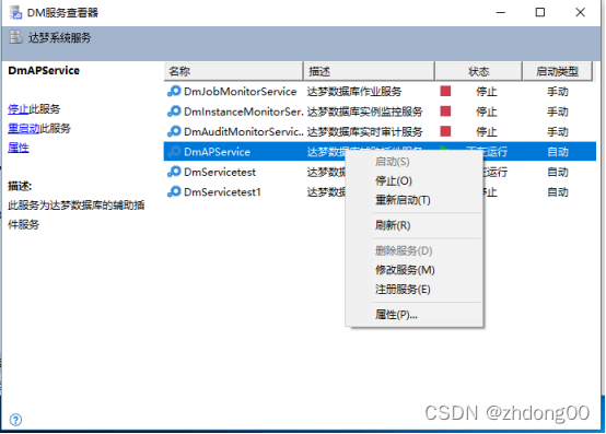 Dm服务查看器可以控制数据库的启动或停止