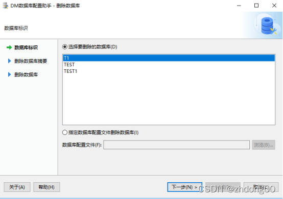 选择要删除的数据库或指定数据库配置文件所在路径