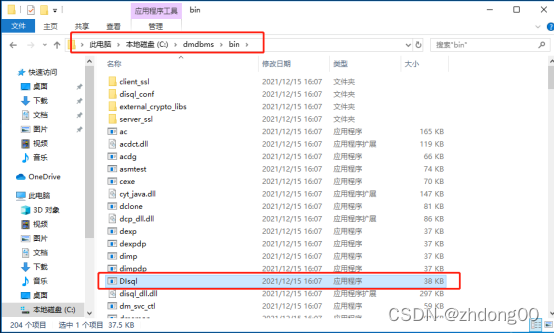 在DM安装目录中的bin目录,点击运行Disql
