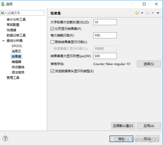 以及sql编辑器执行的结果集进行显示设置