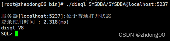 执行脚本语法:./disql 用户/密码@数据库客户端IP地址:端口