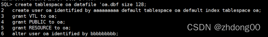 在disql中创建表空间和用户,授权,修改密码