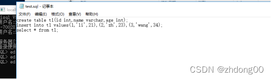 把要执行的sql语句编辑到记事本上进行保存