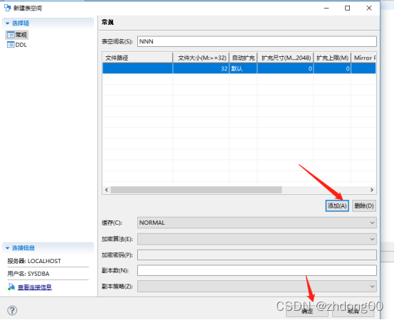 点击新建表空间