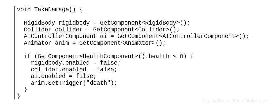 比如下边这个例子,每次计算Damage,都要重复获取rigidbody等5个脚本的引用,这对CPU很不友好,如果要是这函数是在Update函数里每帧都调用,那简直是灾难。