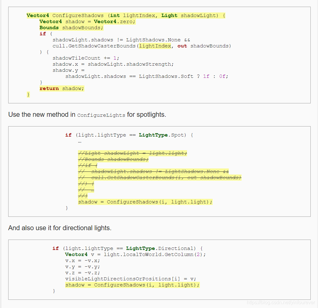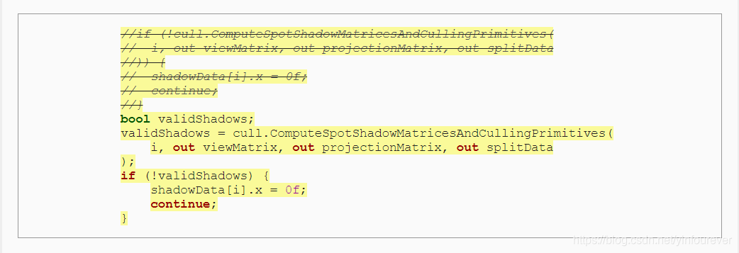 目前ConfigureLights中只处理了聚光源的阴影数据。而处理直射光源阴影的代码和聚光源的是相同的。为了重复利用这些代码,我们对代码进行一些重构,把它们写成单独的方法。