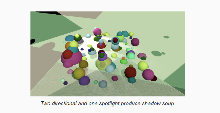 尽管阴影的距离是根据相机视角的距离,但是阴影并不是在当物体离开这个范围后立刻消失。这是因为阴影贴图覆盖了一个立方体的空间区域,只要这个区域的一部分在范围内,就会整个都渲染。方向光随着相机的移动阴影贴图也会重新渲染,所以对于这一问题方向光很合适,但是聚光源就不一样了,它的阴影空间区域和光源锁定,即使阴影距离只占空间的很小一部分,最终渲染的还是整个区域。结果就是聚光灯阴影贴图包含的所有阴影同时出现和消失。