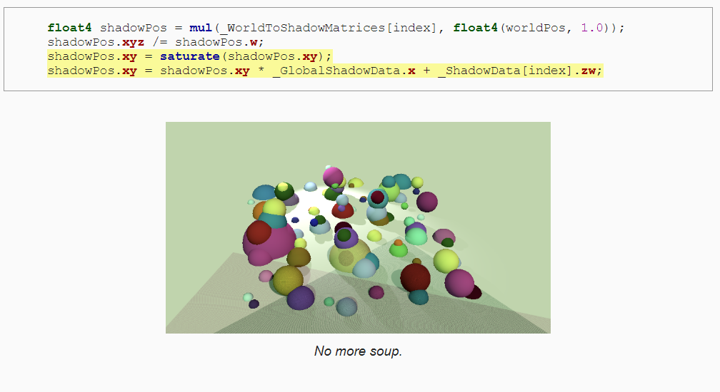 另一个原因则是因为Unity的旧版渲染管线可以用它展现高质量的软阴影滤波结果。但是在轻量级渲染管线里就用不到了,他对于所有的阴影采样都使用相同的代码。