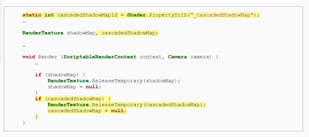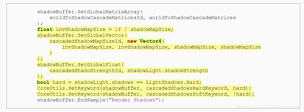 在RenderCascadedShadows函数末尾设置这些值和关键字。