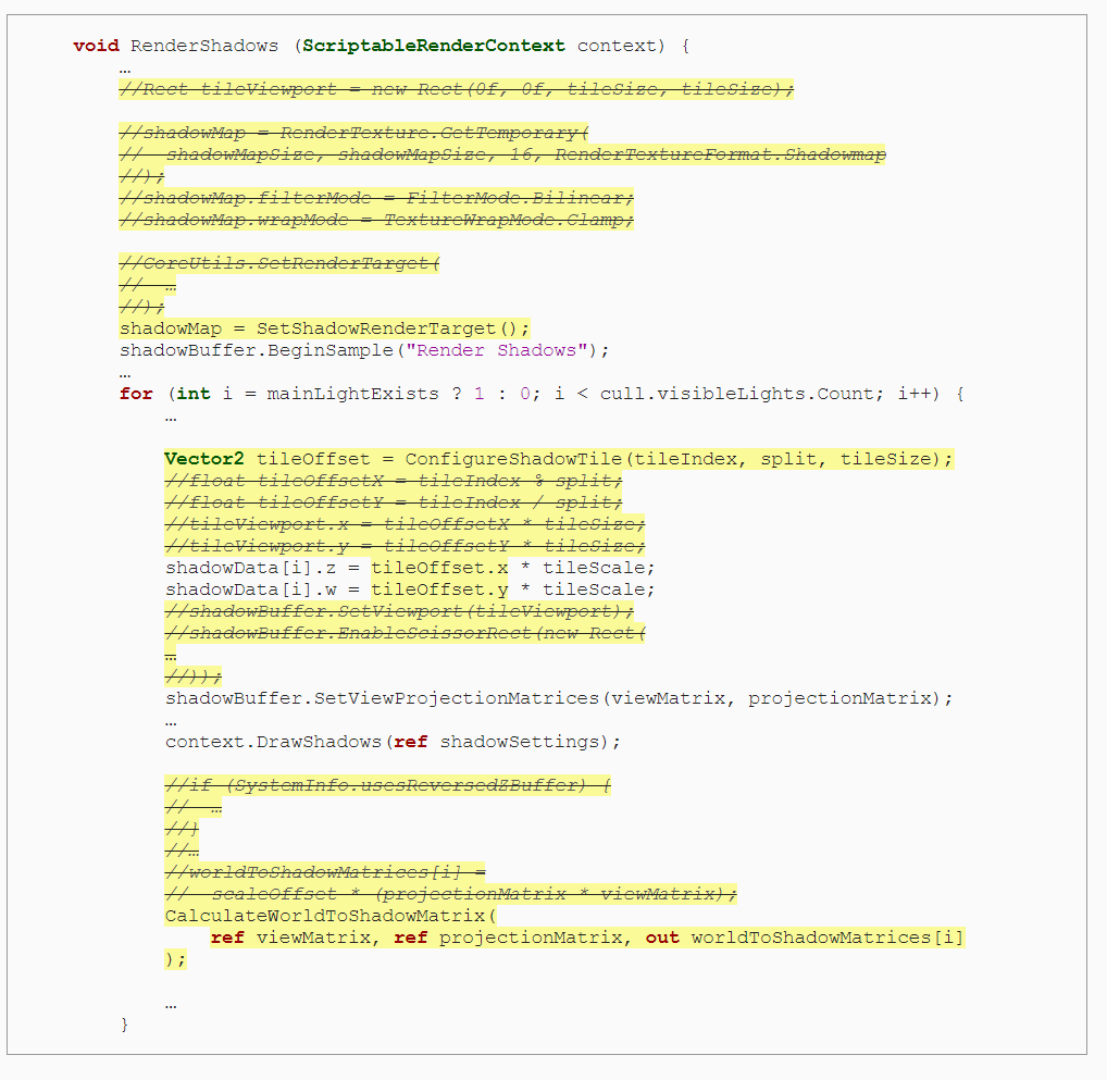 最后,调整RenderShadows函数使其使用重构后的函数。