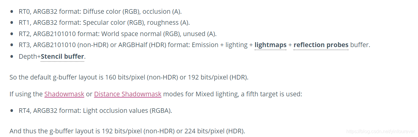 更详细的信息可以参考Unity官方文档 https://docs.unity3d.com/Manual/RenderTech-DeferredShading.html