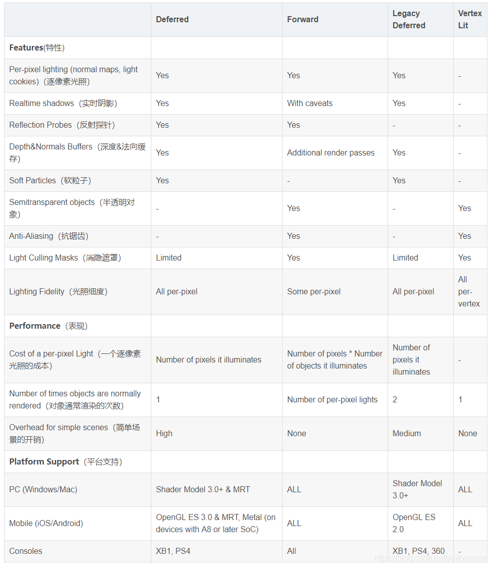 六. 总结下目前Unity传统渲染管线中支持RenderPath的情况
