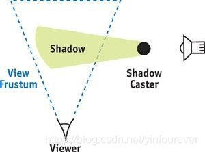 - 阴影集合:L的一个子集S,它包括向可见区投射阴影的所有物体。如下图所示,V视椎外的shadow Caster投射的阴影确在V中,这个shadow caster就属于集合S