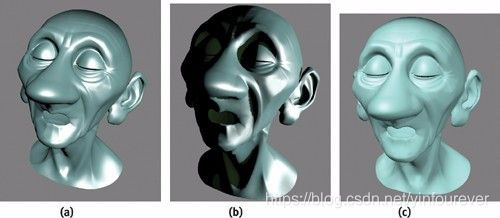 下面两幅图说明了uberlight 的使用效果。照明来自Pixar短片“Geri's Game”中的人物头部。
