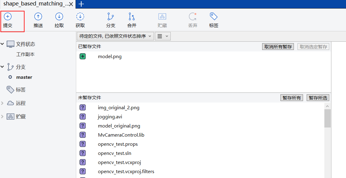 工程中文件太多直接用git add .太费时间了,正好试一下sourceTree,在这里可以选择被跟踪的文件