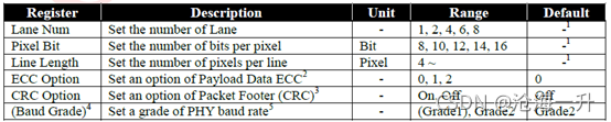 SLVS-EC接口采用波特率。每个Lane的 PHY 比特率定义为下表中的波特率。