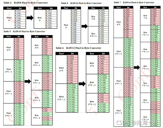 SLVS-EC接口支持RAW8、RAW10、RAW12、RAW14、RAW16。每一行的长度需要为4的整数倍。