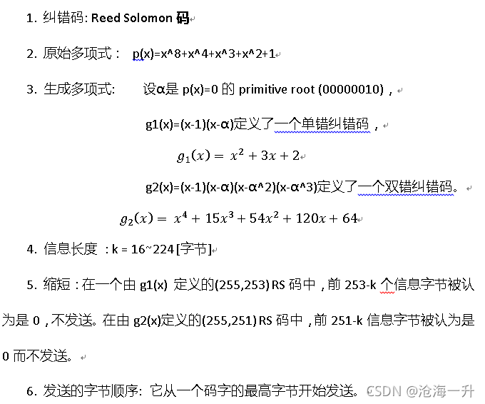| RS码 | 用于有效载荷数据的纠错 |