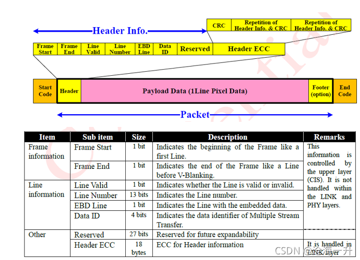 帧格式也是在是由应用层(CIS)功能配置的。通过使用包头和该接口的其他功能嵌入帧和行信息,帧格式可以在DSP侧正确传输和重新配置。