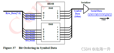 字节数据的第0位被输入到8b/10b端口A,10位符号数据作为串行数据从a开始传输。
