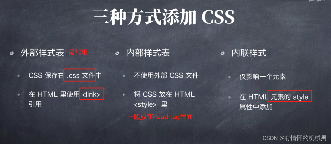 <html lang="en"><head><meta charset="UTF-8"><title>CSS 样式表学习</title><!--在head中设置样式:添加CSS方式内部样式表-->