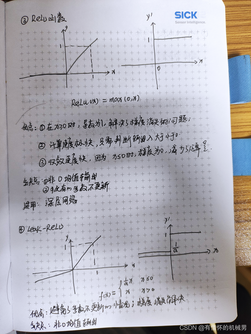 RELU函数因为其在正空间为线性的缘故,因此适用于深度很深的神经网络中,比如VGG16的实现。但是因为其在负空间直接将值置为0,导致导数为0,使得会出现参数不更新的情况,称之为Dead ReLU Problem,基于此,出现了leak-rule函数,它是给了一个非常小的系数,使得在负空间的导数接近于零而不等于零,优缺点如下: