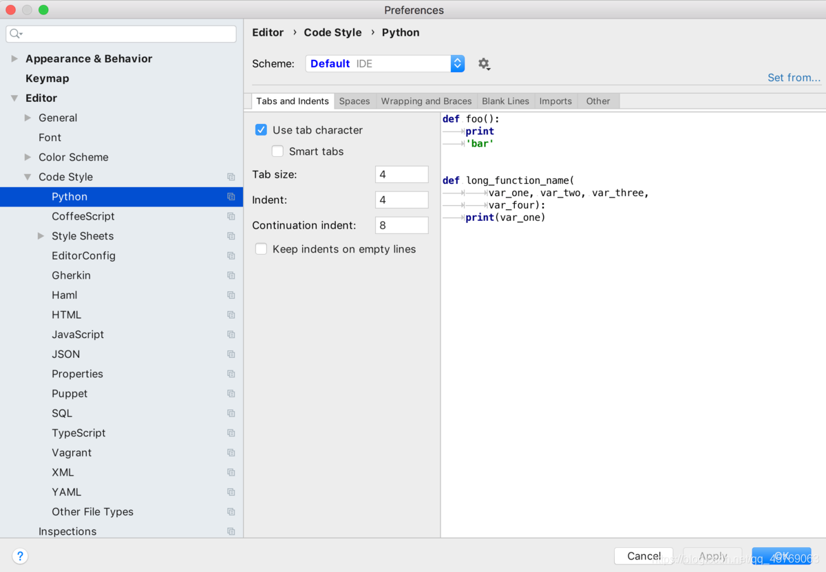 2、tab和space混用(如果一段代码既使用space又使用tab进行缩进,会发生错误,这个时候PyCharm会自动进行判断,根据设置的预先缩进值(intentaion)进行调整)