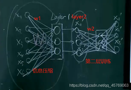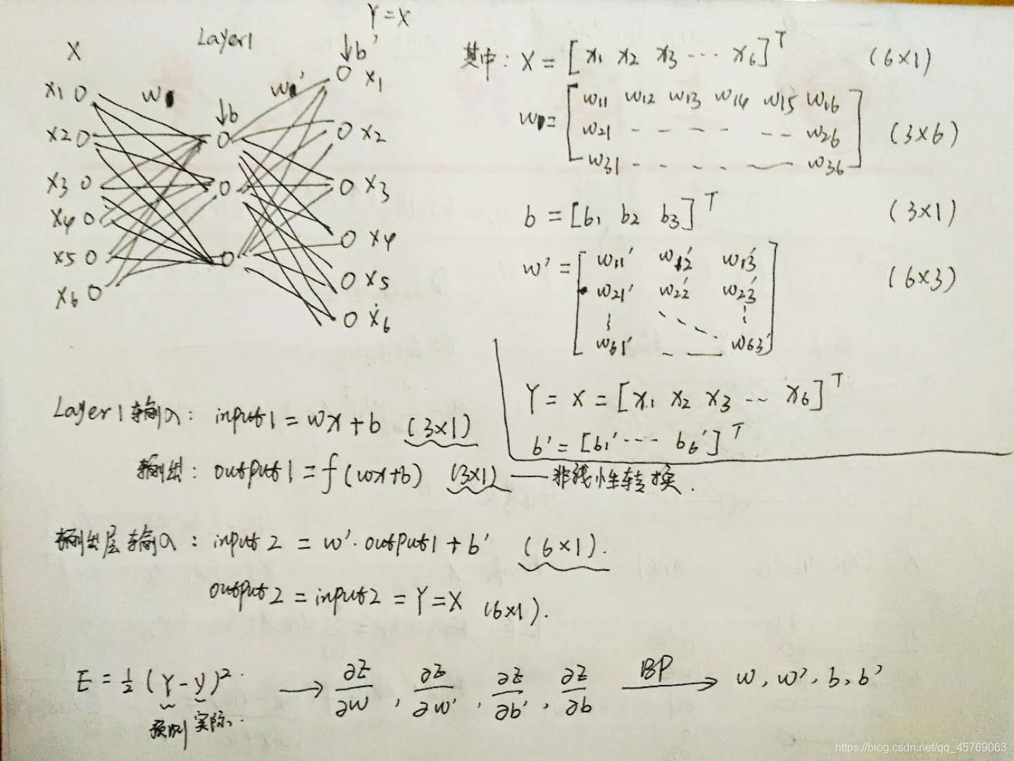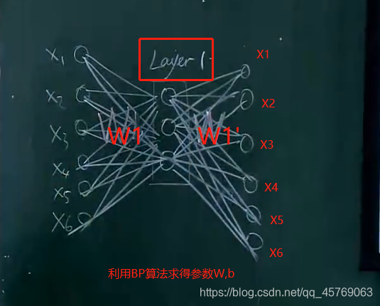 假设第一层的输入为X,输出也为X,利用BP算法对这个网络进行训练,求得参数w1,b1,w1',b1'