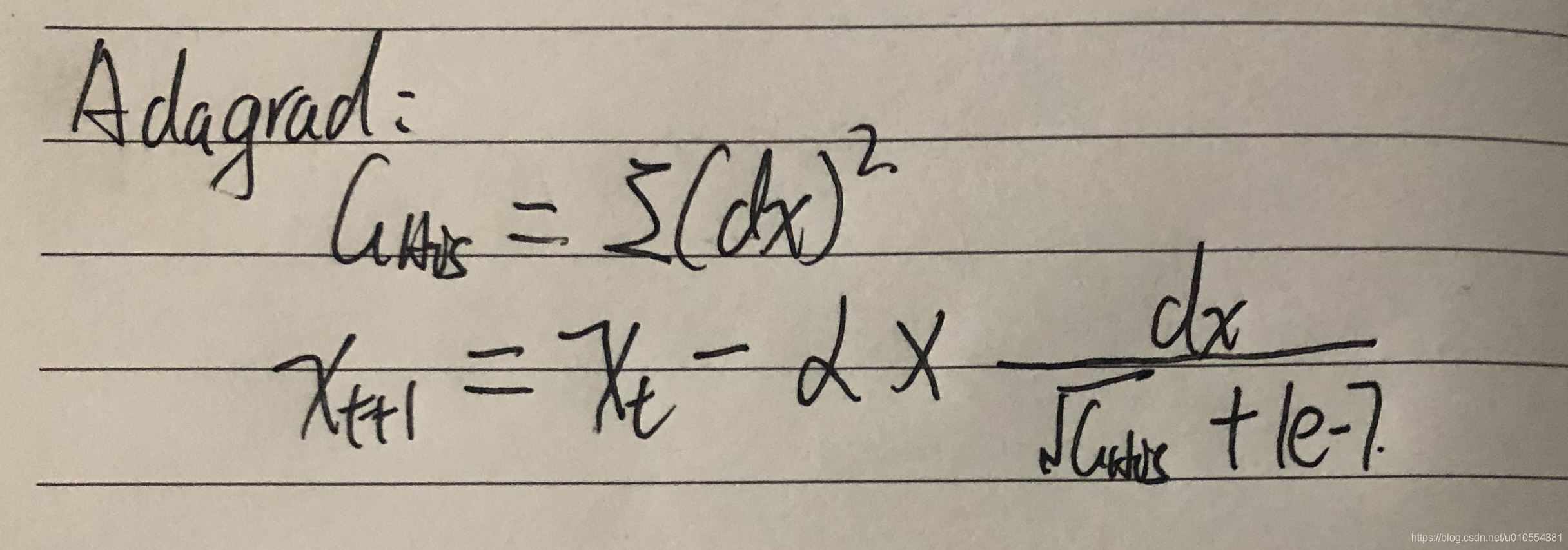 Adagrad加入了二阶动量,即“自适应学习率”优化算法。在训练过程中经常更新的参数A,应该降低其学习速率;而对于偶尔更新的参数B,在针对特定出现的样本数据训练时应增大其学习速率。