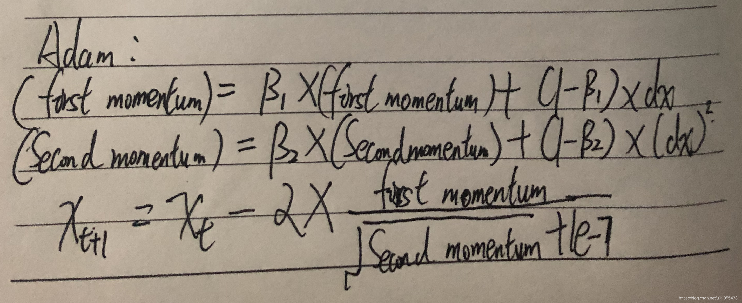 上图中first momentum和second momentum分别是一阶动量和二阶动量。