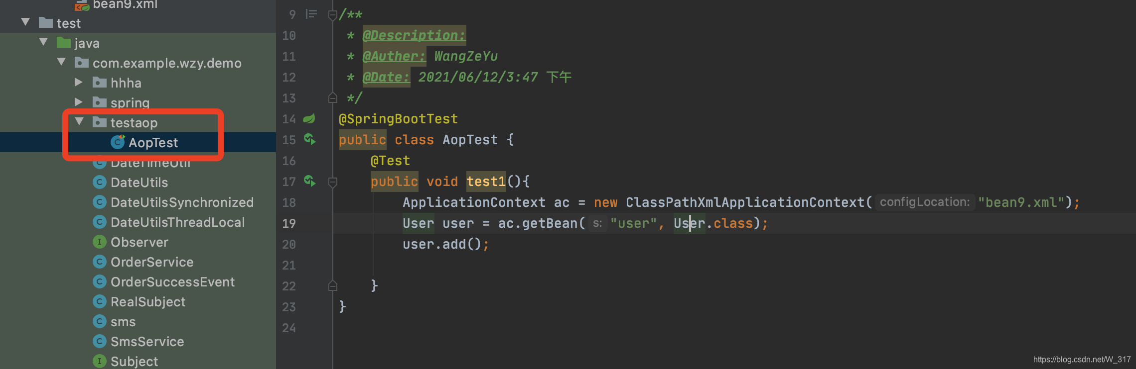 @Testpublic void test2(){ApplicationContext ac = new ClassPathXmlApplicationContext("bean10.xml");Book book = ac.getBean("book", Book.class);book.buy();}