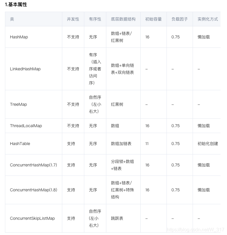map的主要特点是键值对的形式,一一对应,且一个key只对应1个value。其常用的map实现类主要有HashMap、HashTable、TreeMap、ConcurrentHashMap、LinkedHashMap、weakHashMap等等。
