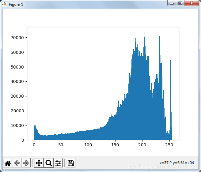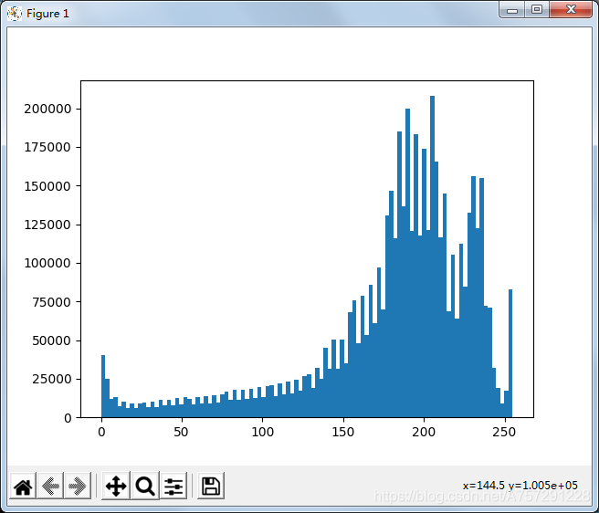 左边纵坐标数据则是个数,横坐标x是0逐渐增大,也就构成了一种越靠近左侧越黑,越靠近右侧越亮的这一种分布情况。我们也可以将以上的0到100范围改成0-256,这时即可恢复原样: