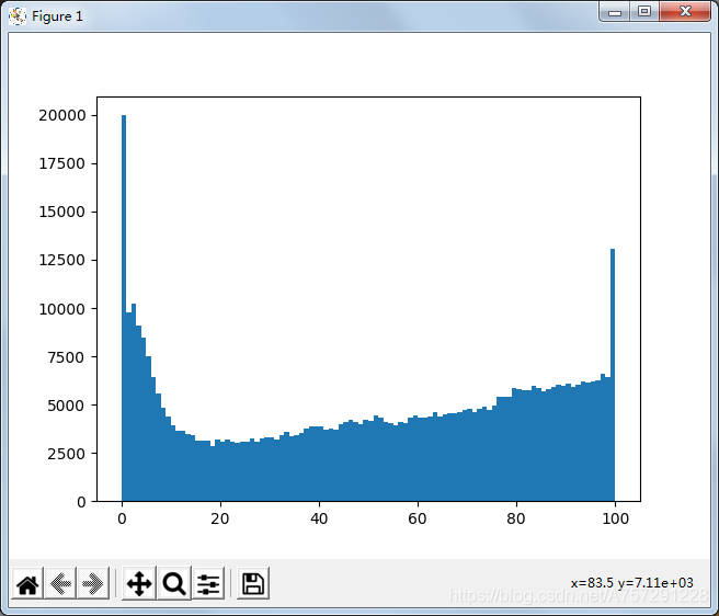 hist的第三个参数是统计范围,你需要直方图显示哪个范围内的数据,例如[0,100],这时就可以写成: