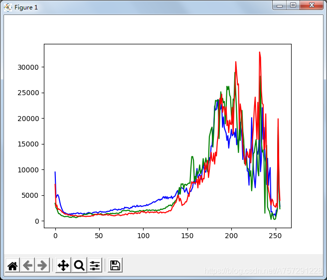 以上只绘制了一个完整图像的直方图,现在我们来试一下绘制3个通道RGB的直方图图像。