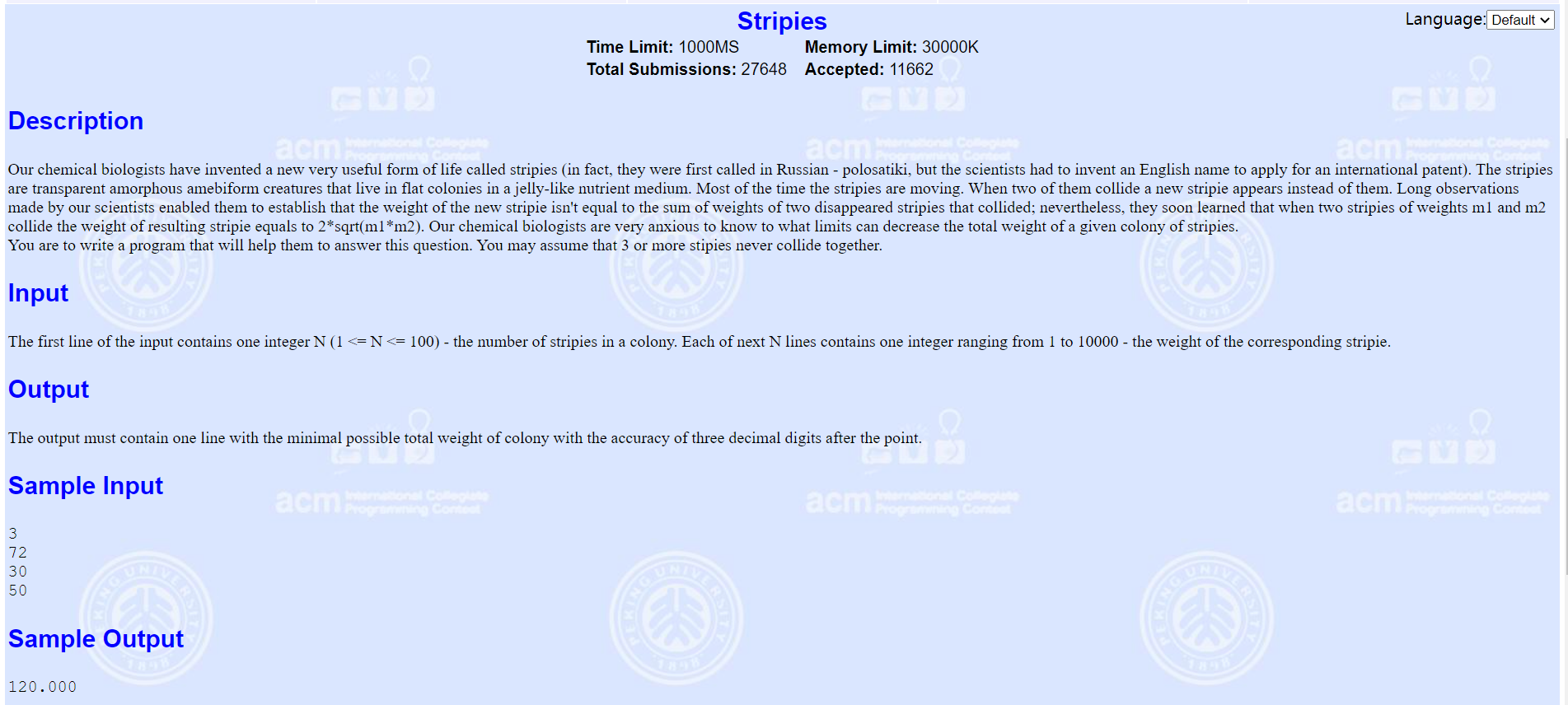 {priority_queue<float> pqueue;int n;cin>>n;float temp;for(int i=0;i<n;i++){cin>>temp;pqueue.push(temp);}float x;float y;float z;while(pqueue.size()>1){x = pqueue.top();pqueue.pop();y = pqueue.top();pqueue.pop();z = 2 * sqrt( x * y );pqueue.push(z);}//精确到小数点后三位 cout.precision(3); cout.setf(ios::fixed);cout<<pqueue.top();}
