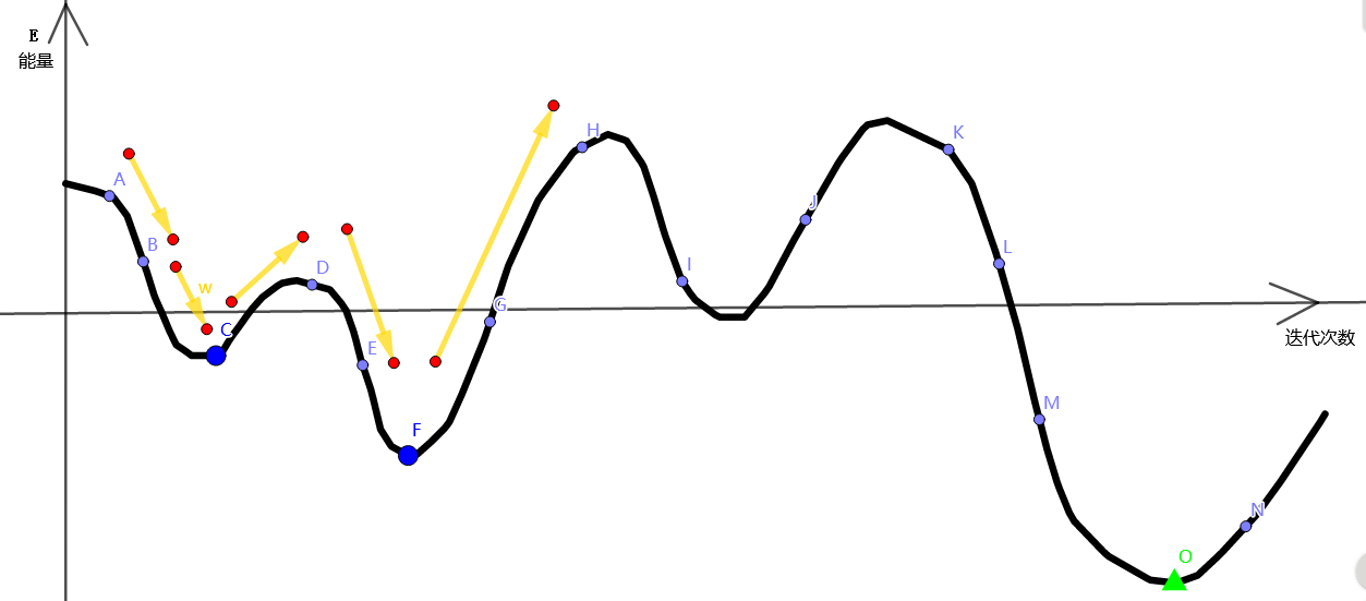 因此就可以根据退火的过程,给其再增加一点能量,然后再冷却,如果增加能量,跳出了局部最优解,那么本次退火就是成功的。
