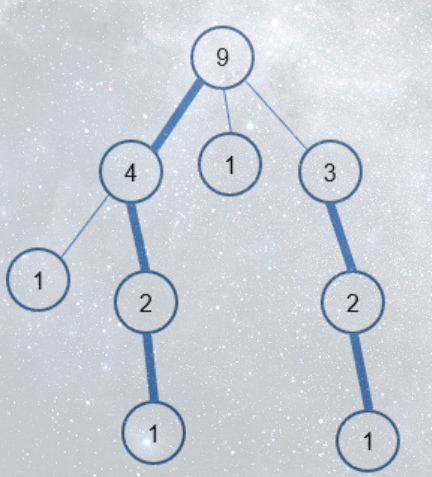 在这幅图中,圈内的数字为每个点的权值,粗边为重边,组成的链称为重链