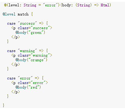 创建标签:views/tags/notice.scala.html,这个标签接收一个string类型值,然后根据值返回对应的html信息