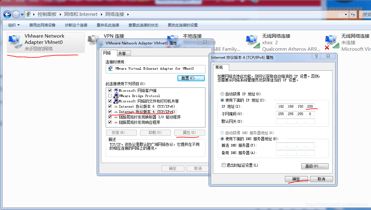 如果ip不能ping通,设置计算机网络的VMnet01适配器,分配一个ip给window系统。如图: