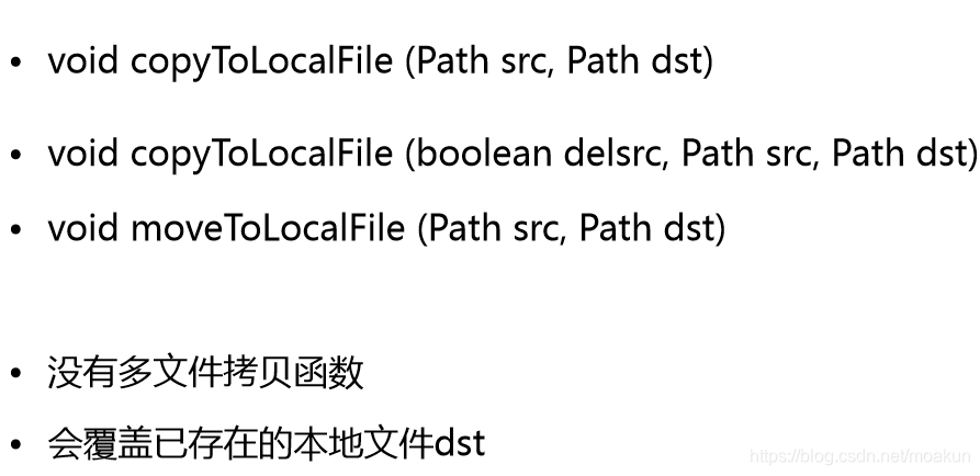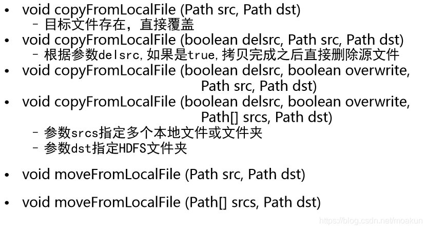 hdfs.copyFromLocalFile(srcPath,dstPath)