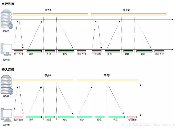 HTTP协议是无状态的协议,即每一次请求都是互相独立的。因此它的最初实现是,每一个http请求都会打开一个tcp socket连接,当交互完毕后会关闭这个连接。