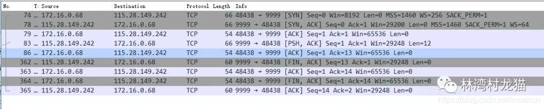 当服务器端没有开或网络问题,会出现连接超时的情况。抓包如下: